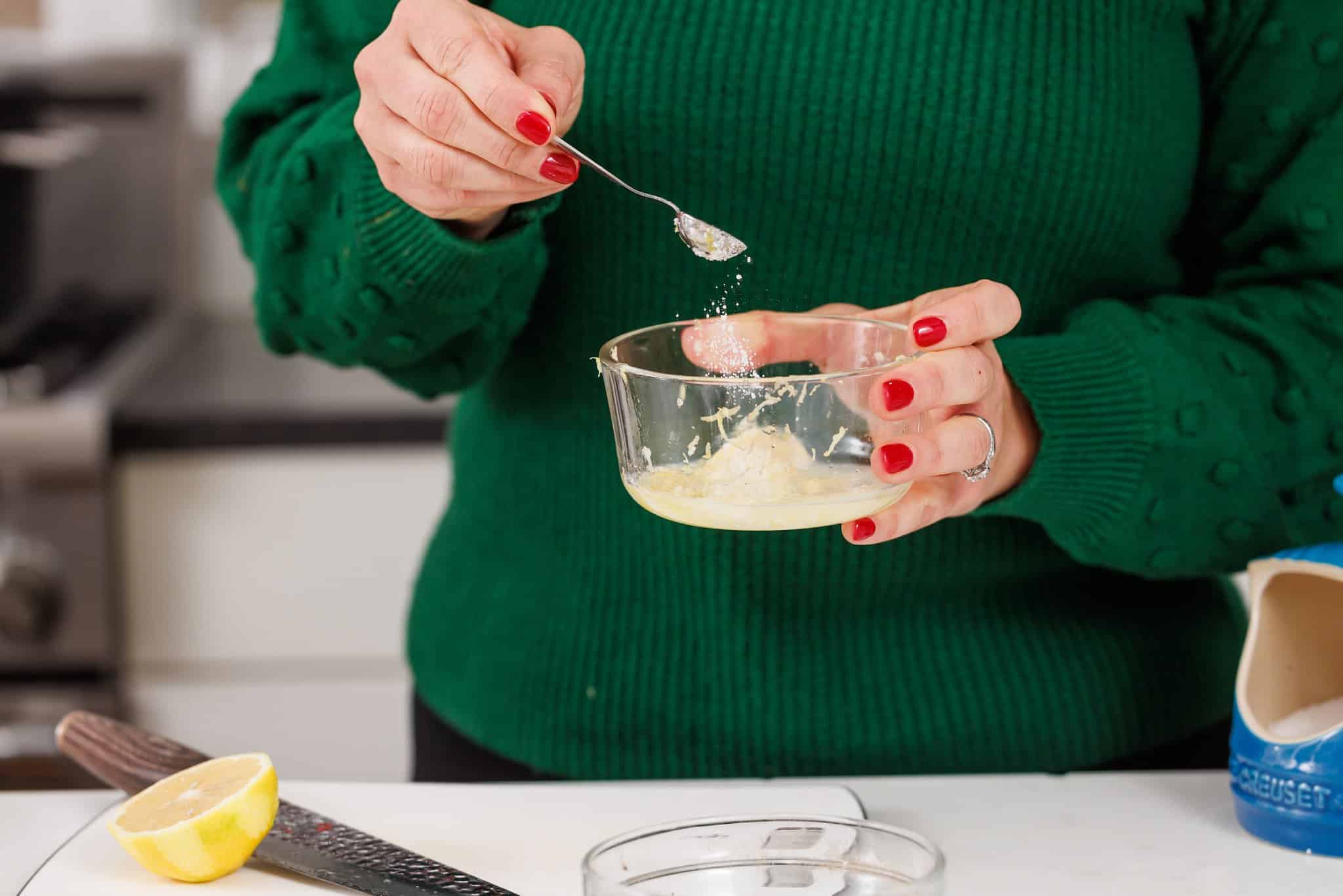 Make sure you zest your lemon first, as it’s significantly easier, then cut it in half and juice it into the bowl, catching any seeds.