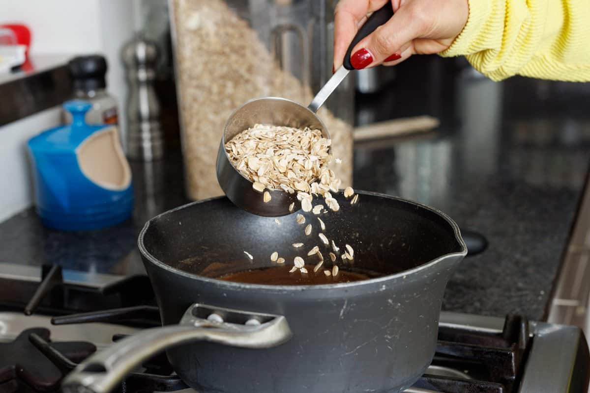 Then add your oats to the pot.