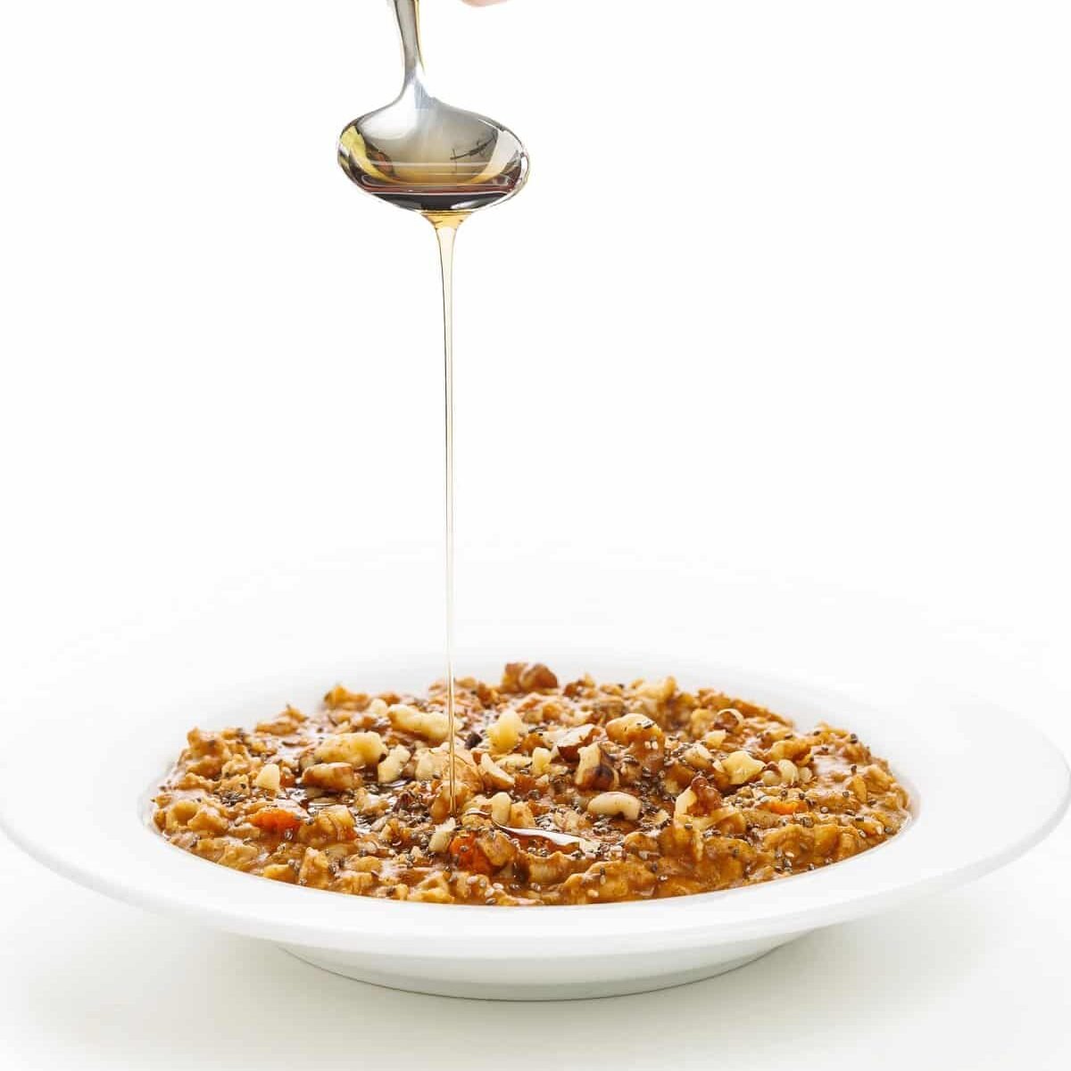 Creamy maple pumpkin oatmeal with chia is packed with protein and nutrients with just the right amount of pure maple syrup for sweetness.
