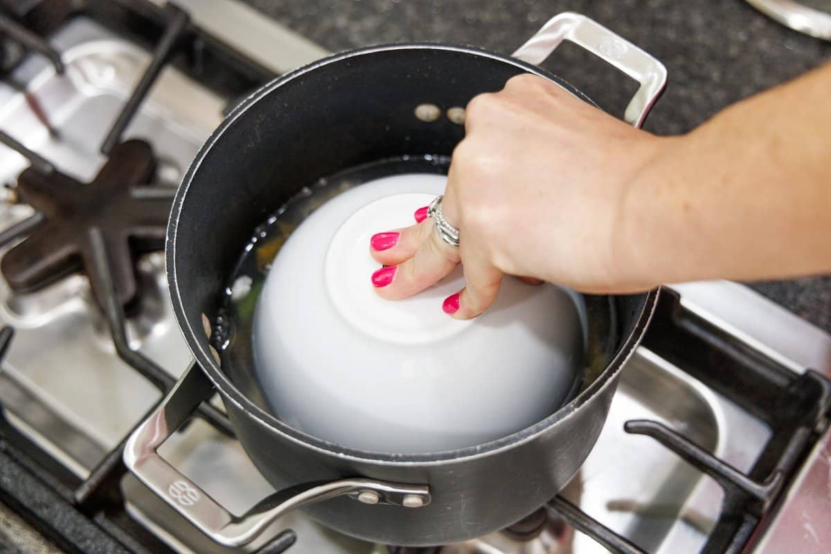 - Cover grapes leaves with a small plate turned upside down to keep them from moving and to weigh it down.