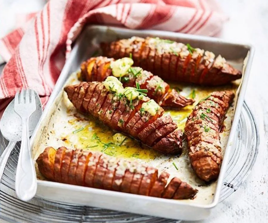 Baked vegetables are a staple of many families’ meals on Christmas Day. But instead of opting for your classic recipe, why not mix it up a little with a new, tangier spin on baked potatoes? The whipped chive butter works wonders with the cinnamon kick.