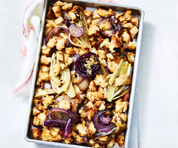 We all know stuffing is worthy of a dish of it’s own. This fennel and cheese version will perfectly complement your main meal.
