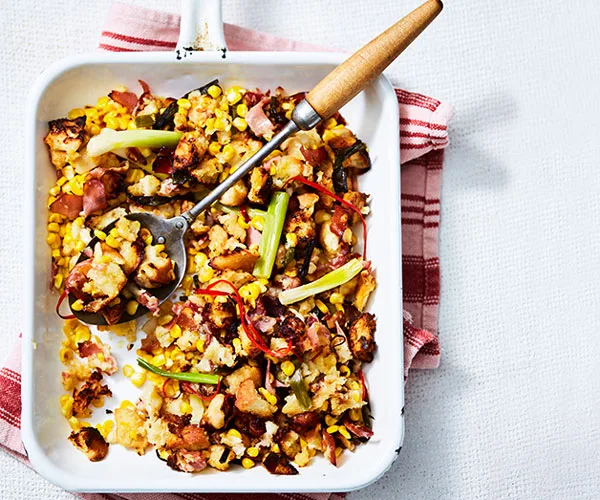 Corn-pancetta pan stuffing