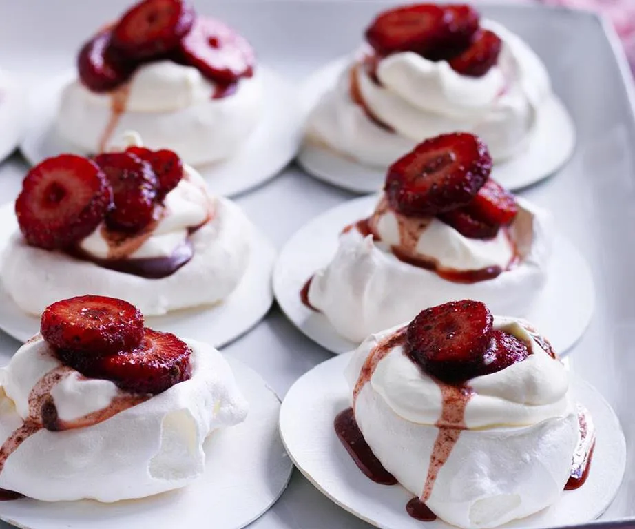 Sumac strawberry meringue nests