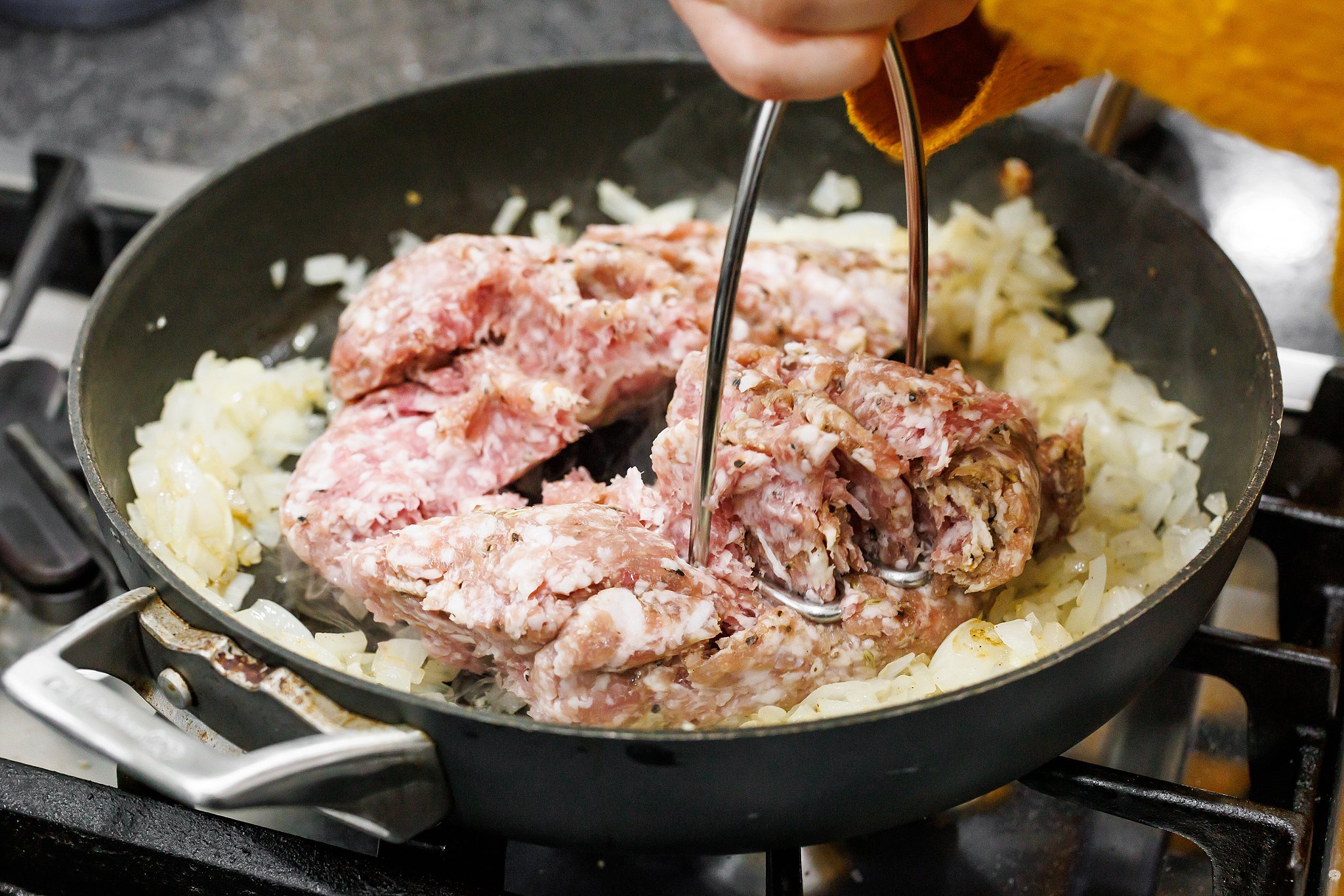 Once onions have softened, add in the Italian sausage, making sure you break it up as it browns.