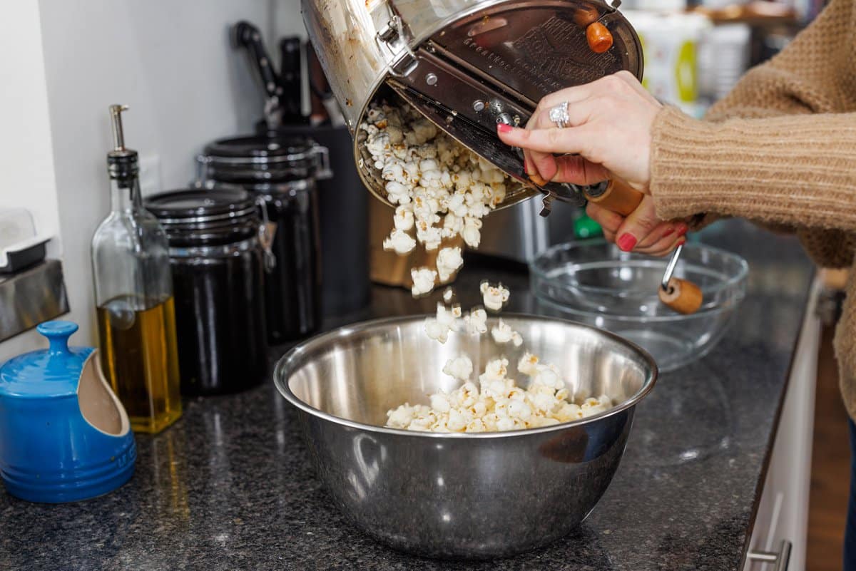 - Pop kernels with your favorite air-popper then place popcorn in a large bowl.1/2 cup popcorn kernels