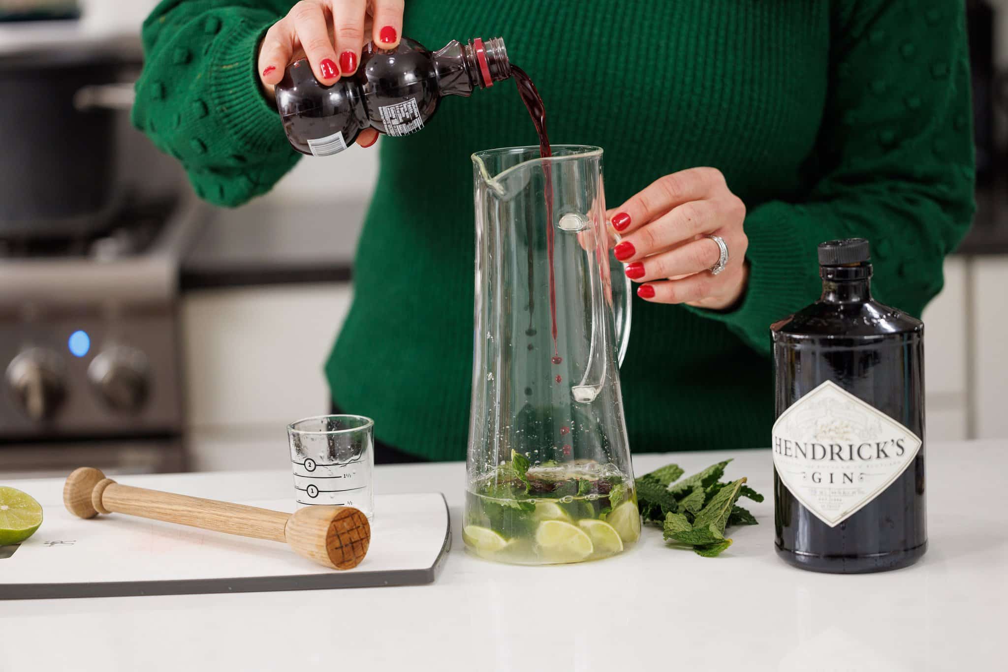 And finish with the pomegranate juice. Stir to infuse all the flavors.