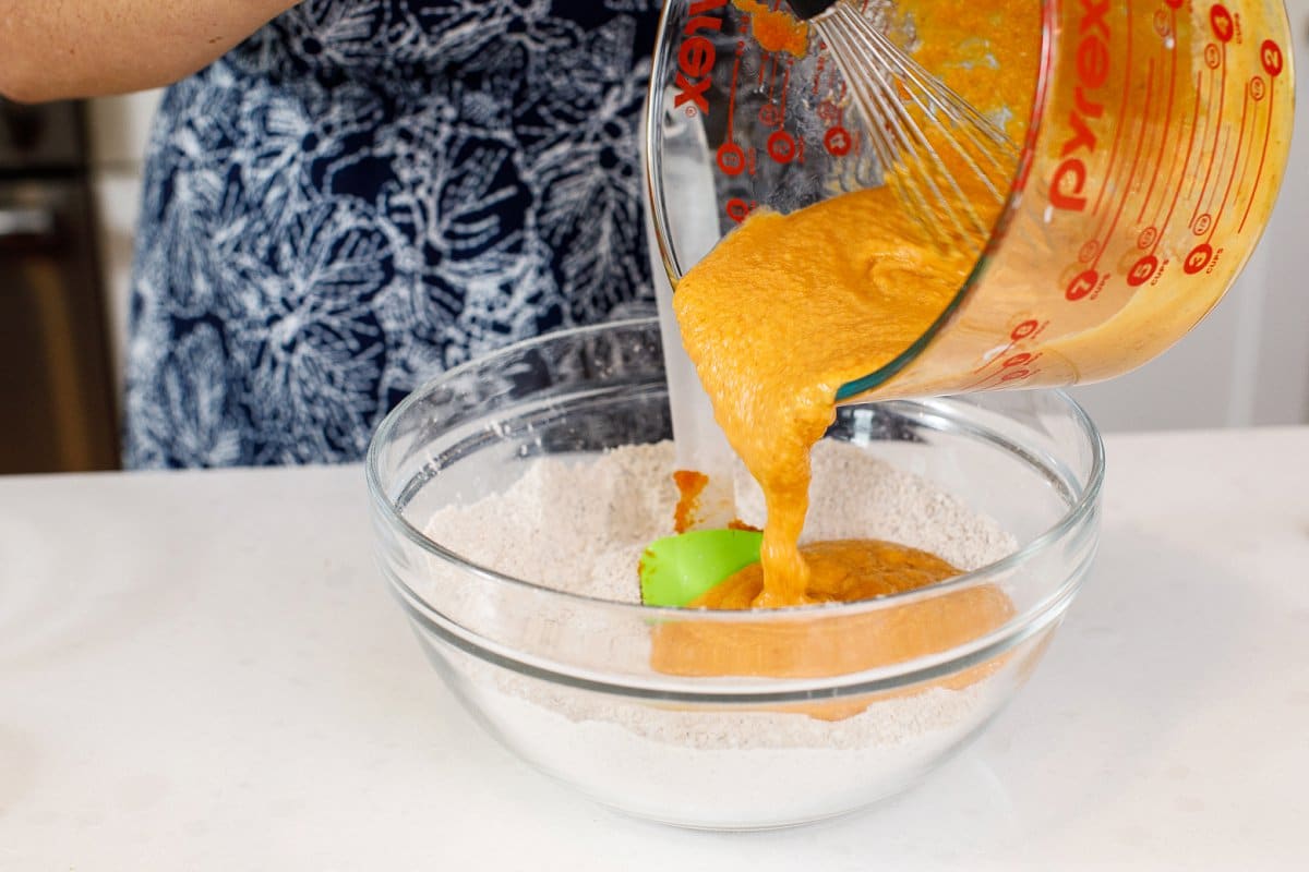 - Slowly add the dry ingredients to the wet and stir until fully incorporated.