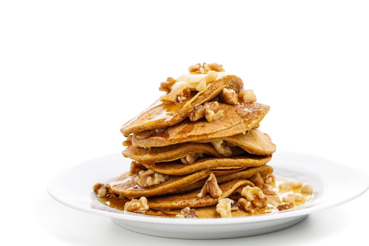 The fluffiest pancake recipe you’ll ever make, these whole-grain pumpkin pancakes are spiced with cinnamon, nutmeg, and ground ginger.