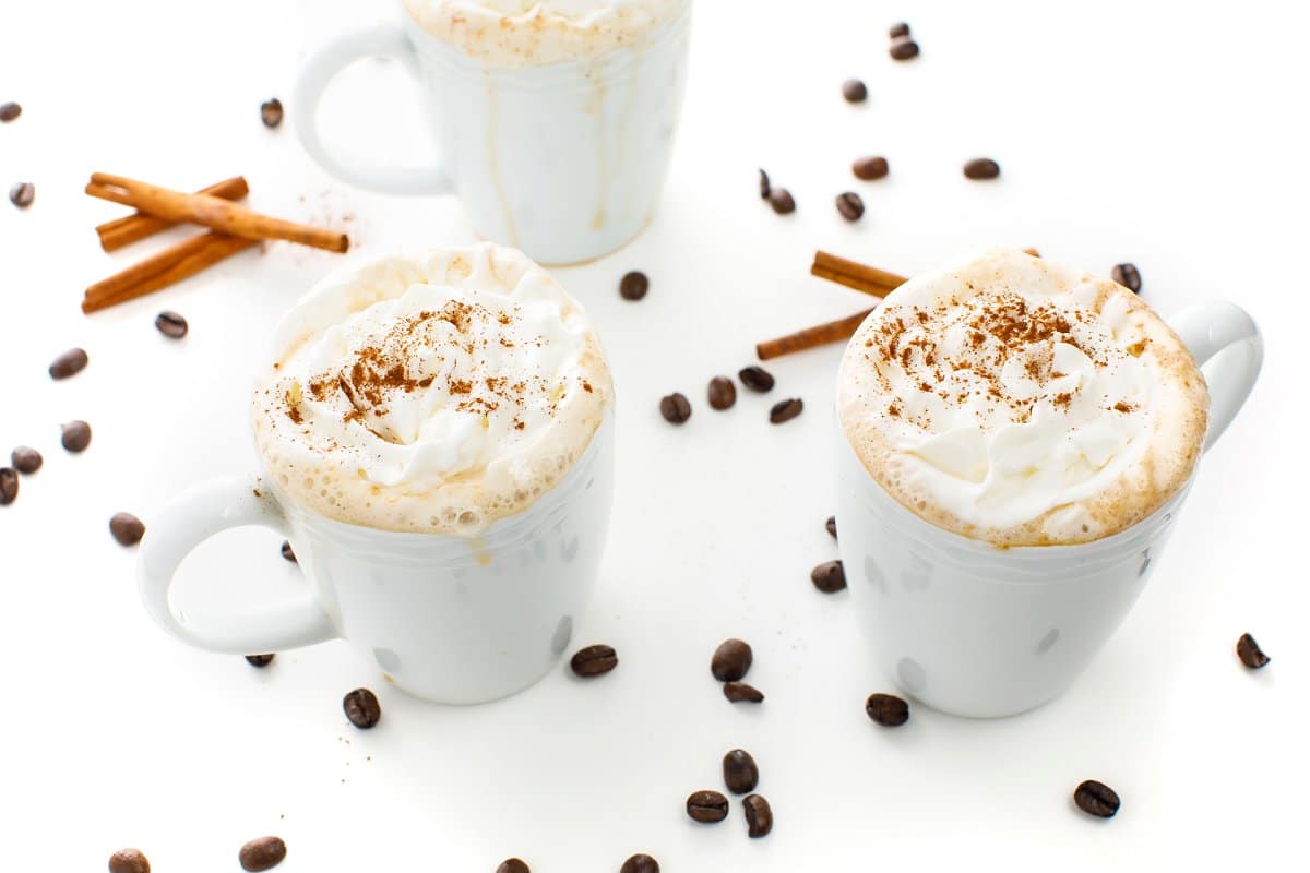 - Fill four coffee mugs halfway with coffee then top with the warm milk mixture. Garnish with whipped cream and a pinch of cinnamon if you wish. Serve immediately.