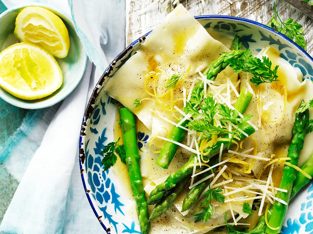 Chicken and asparagus ravioli Indulge your tastebuds with this tasty chicken and asparagus ravioli dish. Full of satisfying flavour and texture, yet jam-packed with healthy nourishing ingredients to boot.