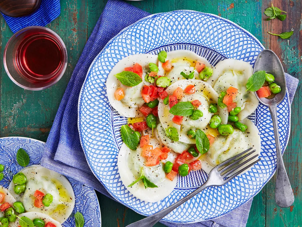 Broad bean and parmesan ravioli Looking for healthy dinner ideas? Look no further than this broad bean and parmesan ravioli – simply divine.