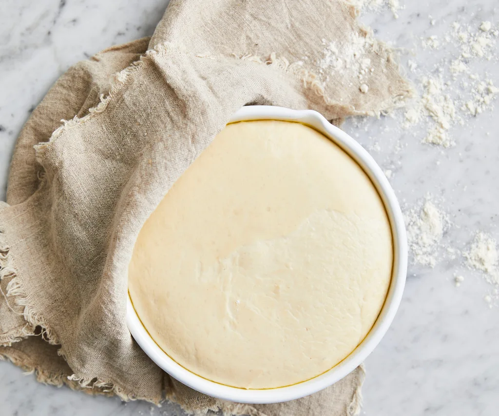 3.Transfer dough to an oiled large bowl; cover with a clean tea towel. Stand in a warm place for 4 hours until dough is full of air bubbles; dough will expand considerably.