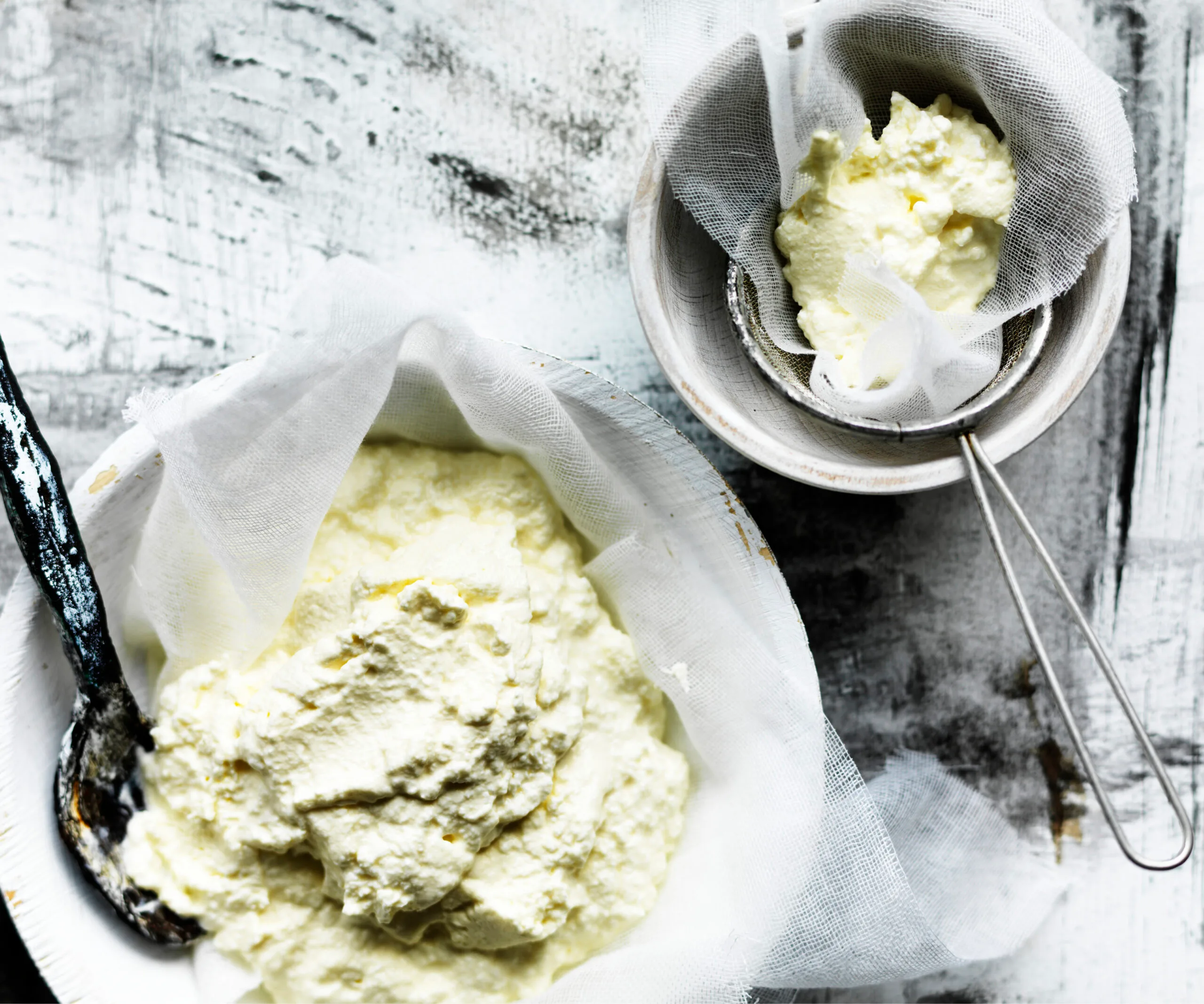 This recipe produces a rich, creamy style of ricotta suited to dessert making.