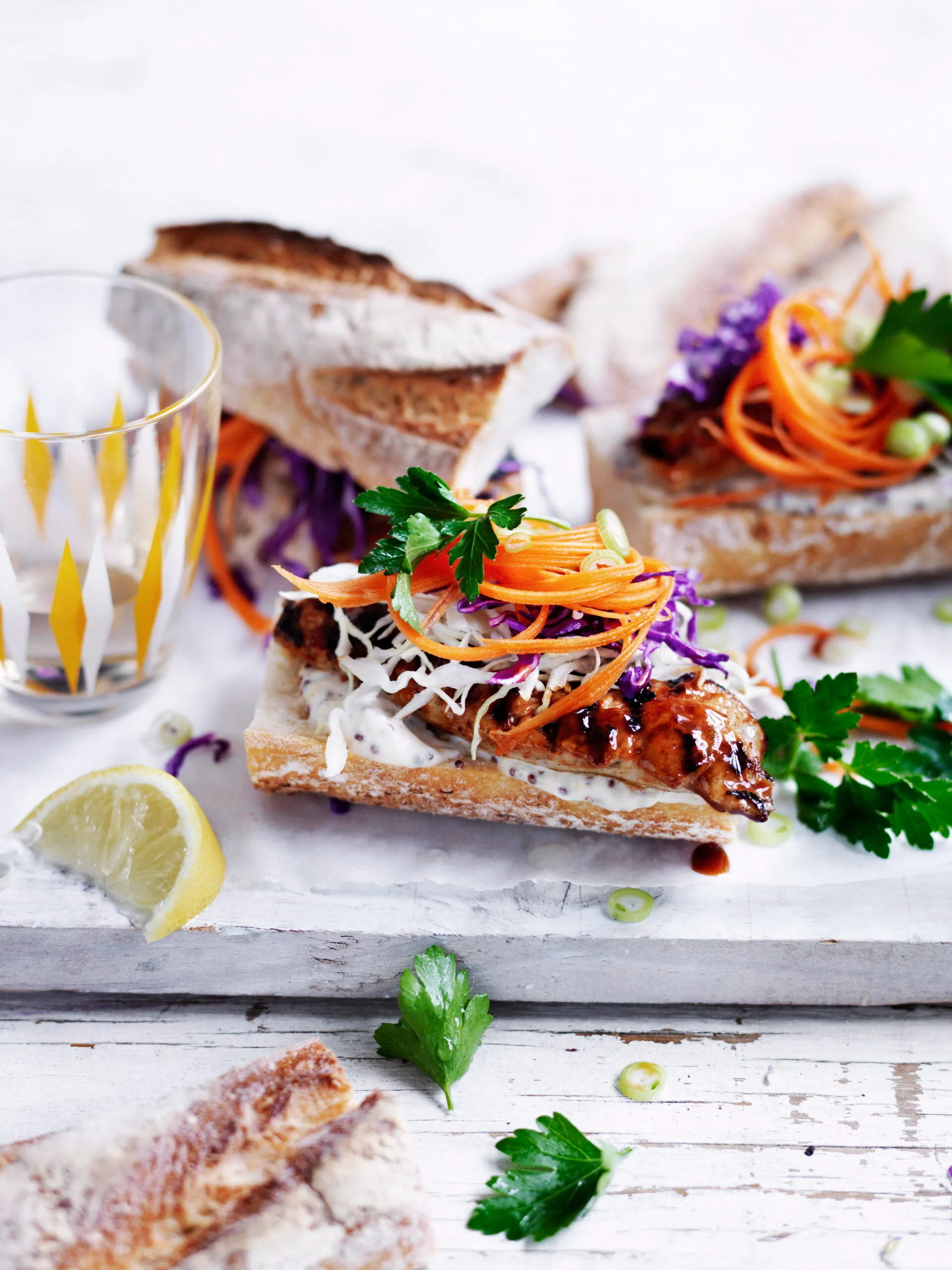 Crunchy cabbage and sweet, creamy sauces are the perfect complement to a grilled hot dog.
