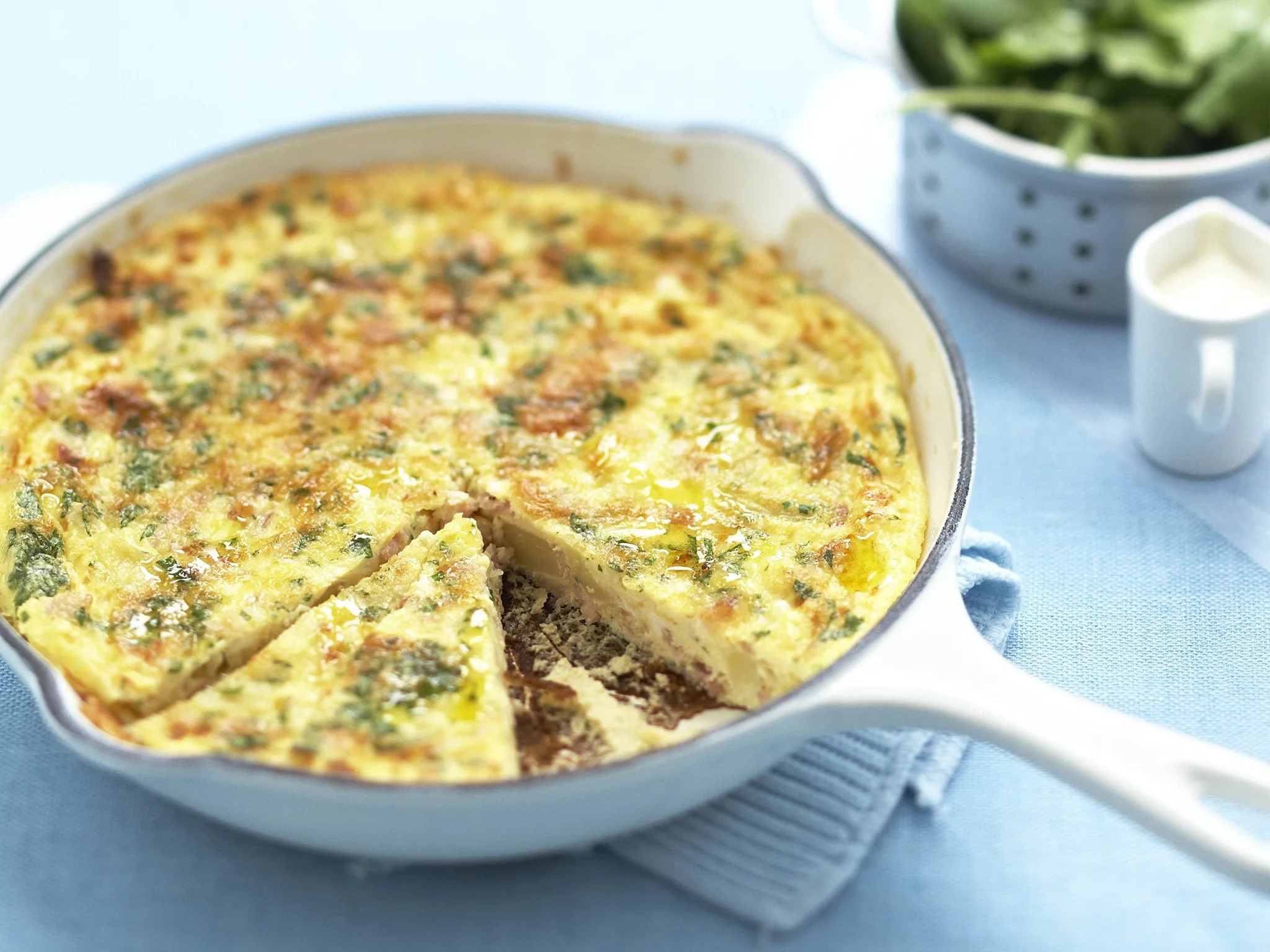 3.In a medium bowl, whisk the eggs and water with parsley, salt and pepper until well combined; pour over potato mixture. Cook frittata over a low heat, covered loosely with foil, for about 8 minutes or until the base is browned lightly.
