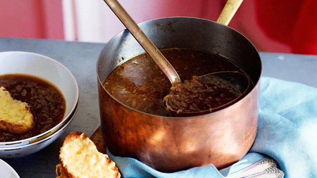 1.In a large, heavy-based saucepan, melt the fat or oil. Cook onion over medium-low heat, stirring occasionally, 45 minutes, or until onions are soft and caramelised. Add garlic; cook a further 2 minutes.
