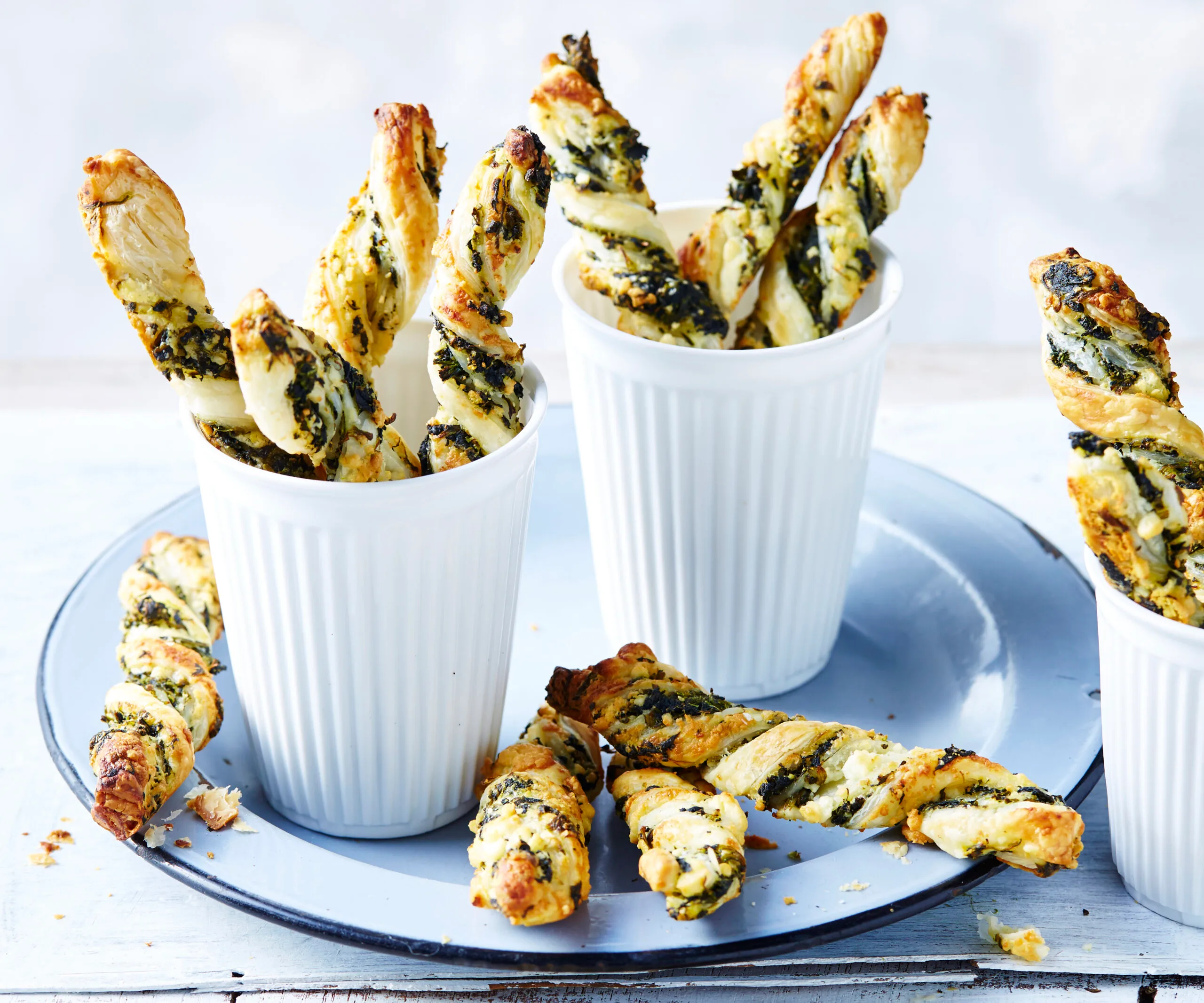 These flaky pastry straws flavoured with spinach and fetta are twisted and baked till crispy for the perfect snack or starter for any occasion.