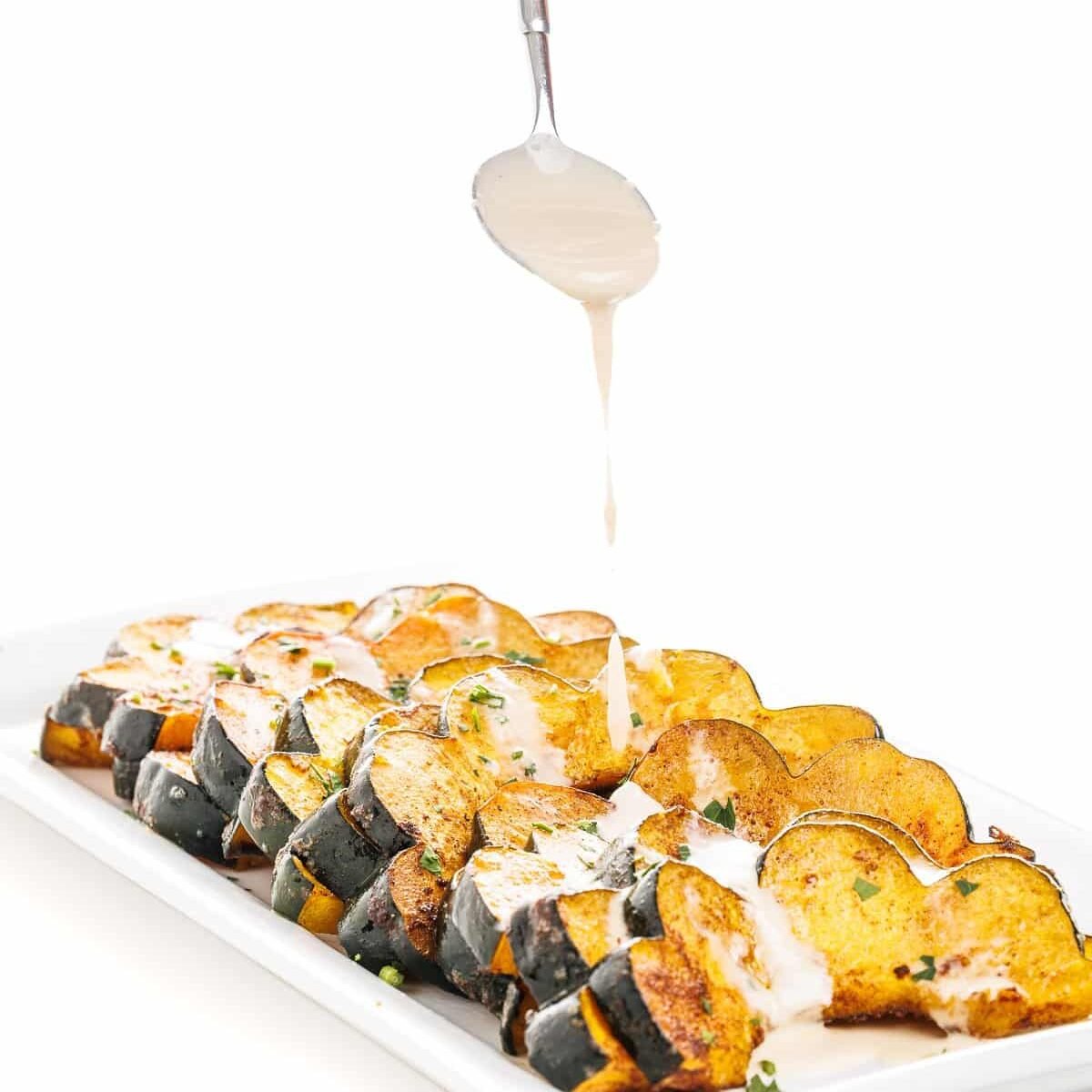 How to Make Roasted Acorn Squash with Tahini Sauce