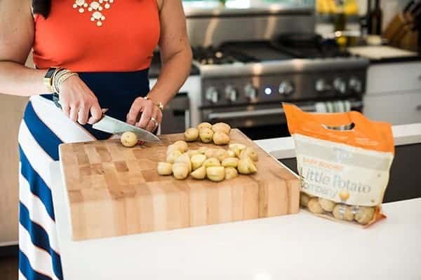 For this recipe I decided to toss Little Potato Company Baby Boomer’s with fresh minced rosemary since I have it growing like a weed in my garden right now. If you don’t have fresh on hand, dried works well too. Simply reduce the amount of fresh by half to get the measurement for dried herbs since they are stronger.