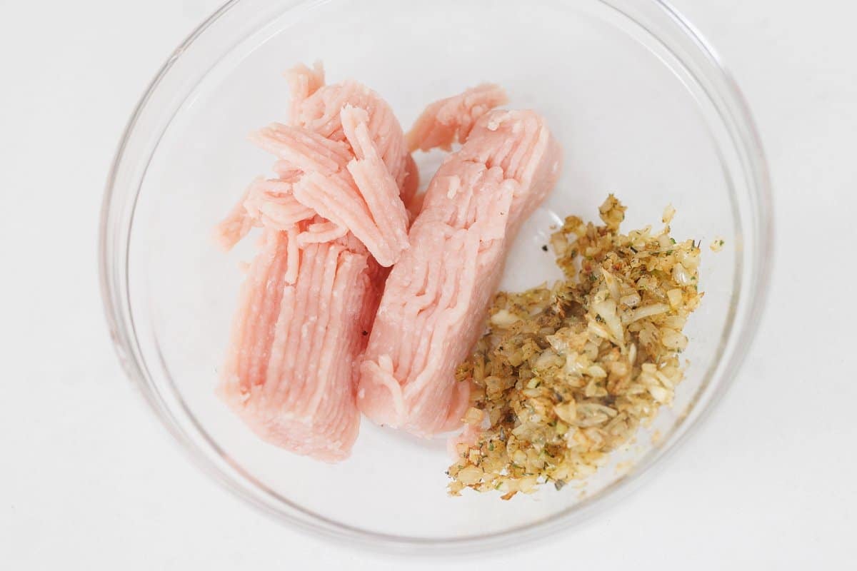 - In a medium bowl, combine ground turkey with grill seasoning, Worcestershire, egg white, panko bread crumbs and cooled onion/rosemary mixture.1 pound ground turkey breast, 1 teaspoon grill seasoning, 2 tablespoons worcestershire sauce, 1 egg white, 1/4 cup panko bread crumbs