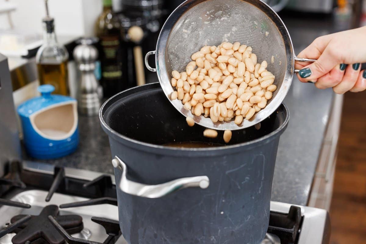 And the drained and rinsed cannellini beans. Bring to a boil.