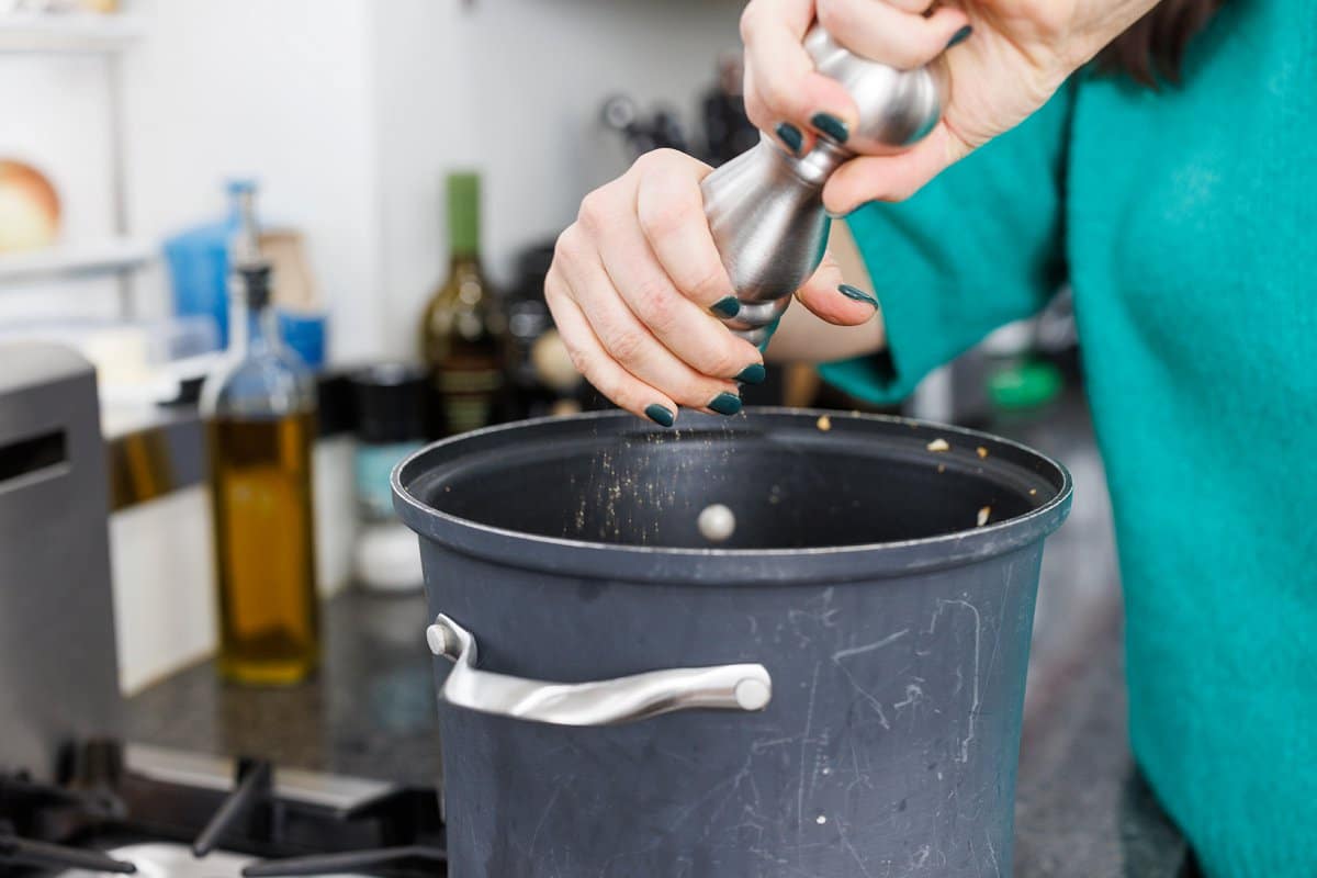Check for seasoning, and add salt and pepper.
