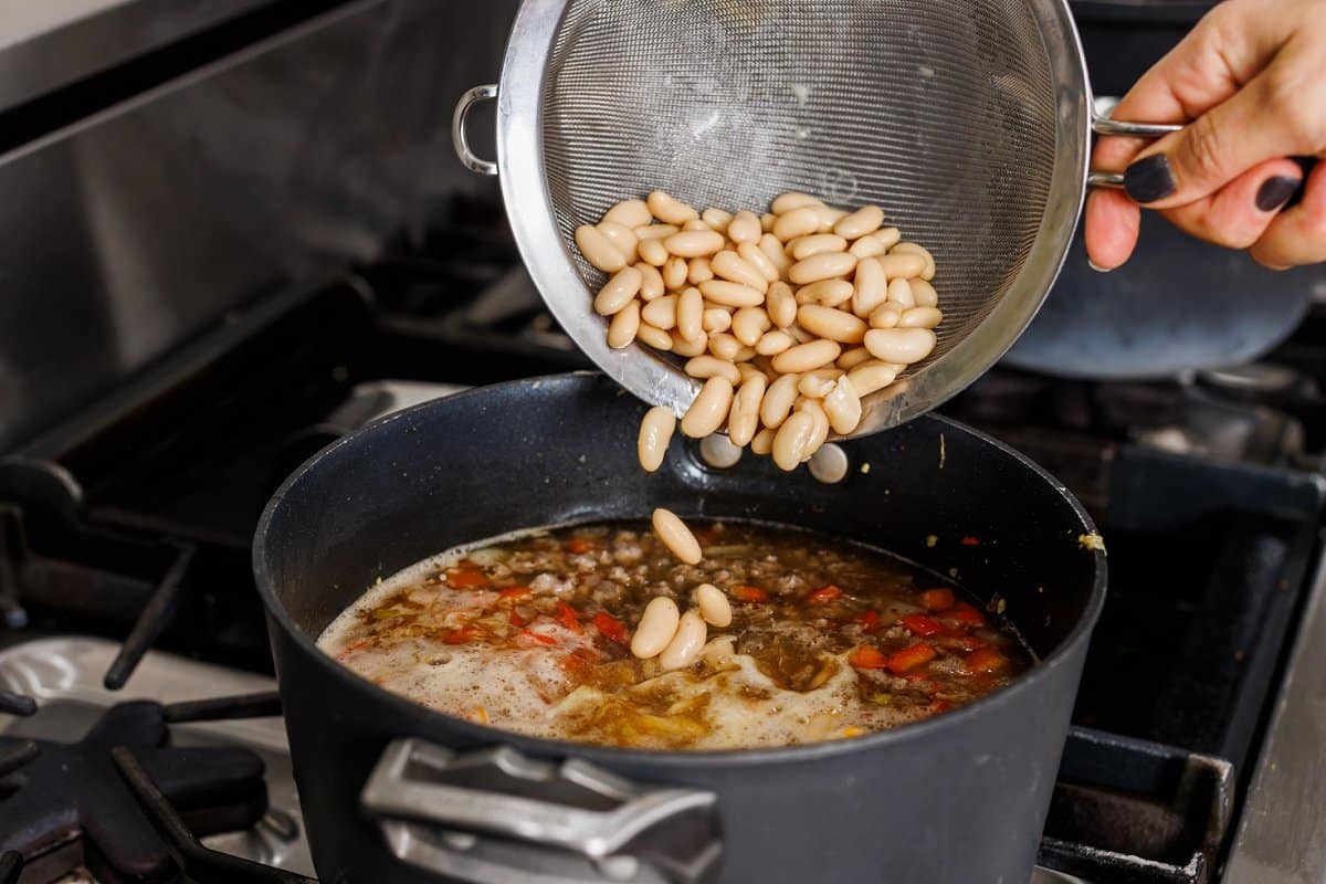 Step 9. Then add the drained cannellini beans.