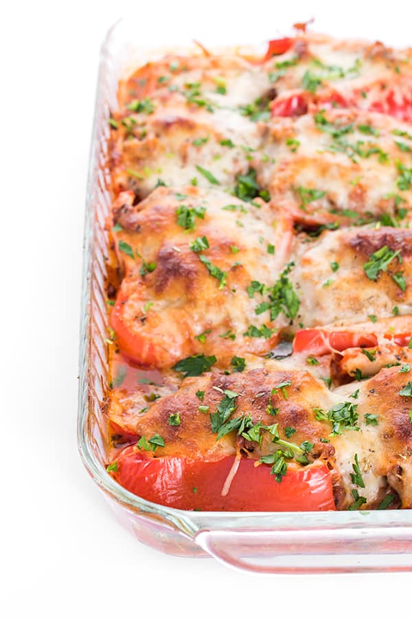 My husband and our youngest are pizza fanatics but my oldest and I could take it or leave it. My solution? These low carb sausage pizza stuffed peppers.