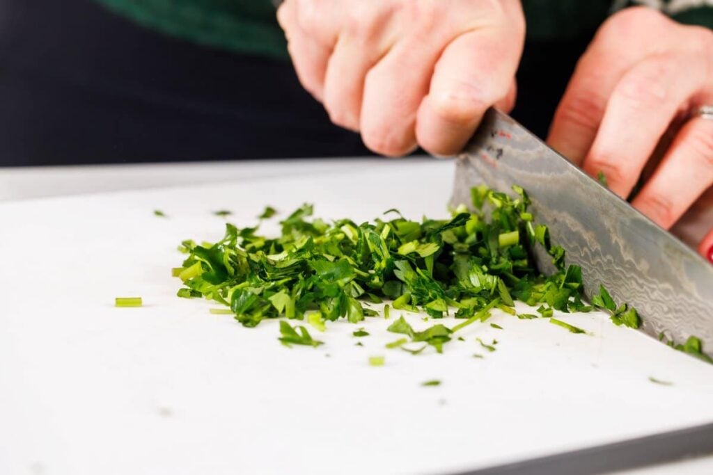 Step 6. While chicken is baking, chop up fresh herbs like parsley or basil.