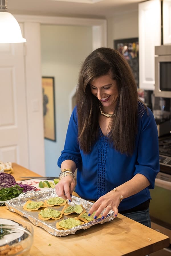 I’m a huge fan of traditional tostadas but I’ve found that I actually prefer making them myself. Typically deep fried, my healthier baked version requires just a tablespoon of heart-healthy olive oil and results in perfect crunchy, crispy tortillas. Minus a ton of extra calories and fat.