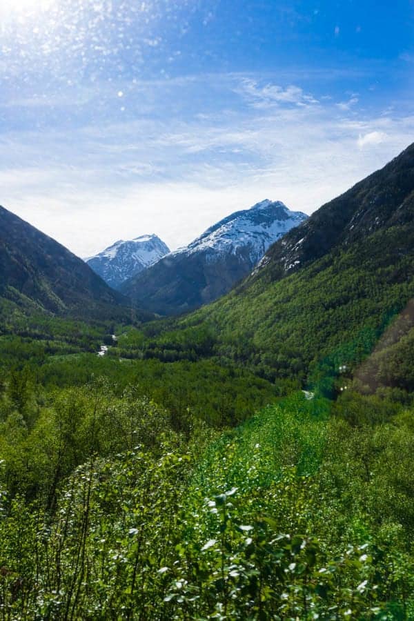 As you ascend higher and higher into the mountains, the landscape changes from lush green to snow-capped.