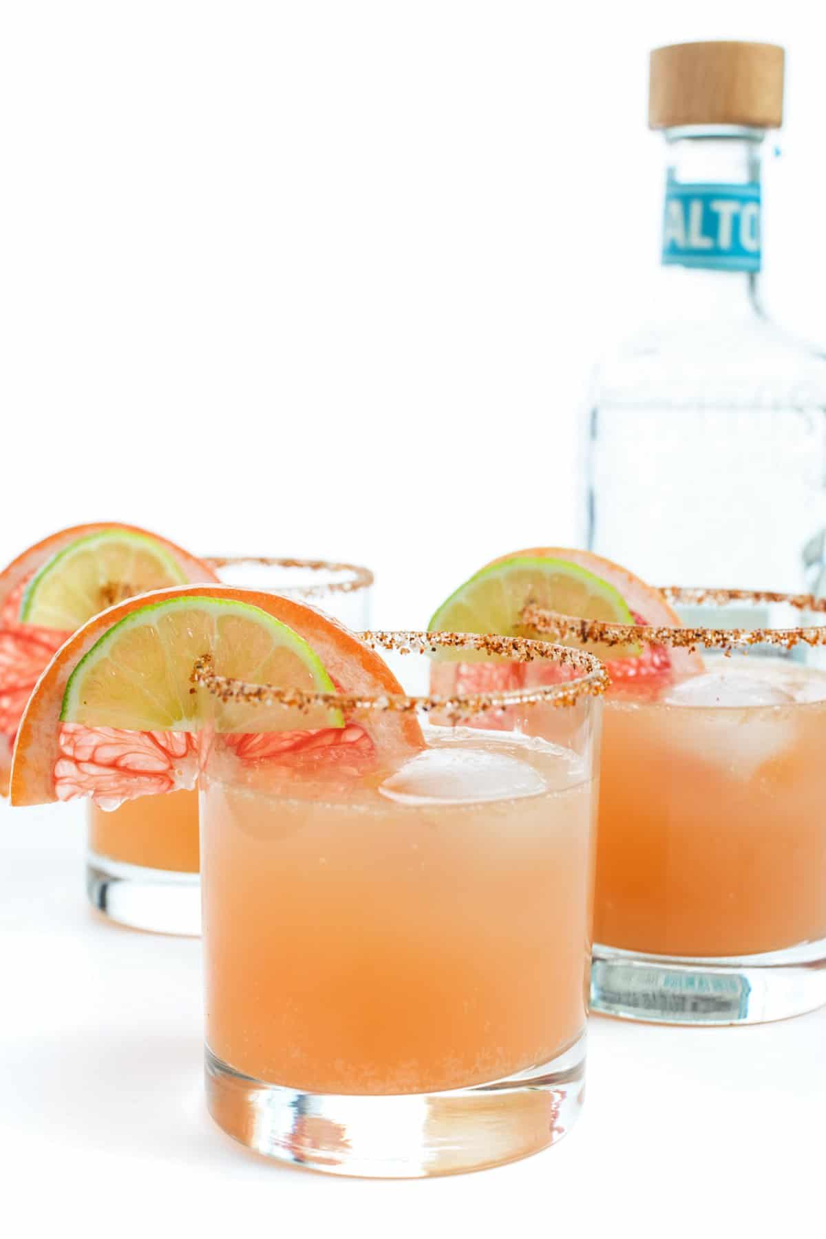 Bright, refreshing, and effervescent, this skinny grapefruit margarita is the ultimate guilt-free, low calorie and low carb cocktail recipe.