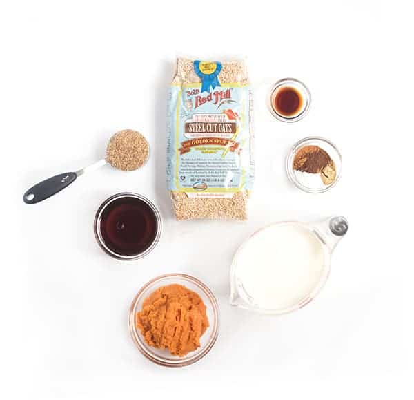 Steel cut oats cook overnight with pumpkin, maple syrup and spices to create a healthy, make-ahead breakfast that will be waiting for you in the morning.