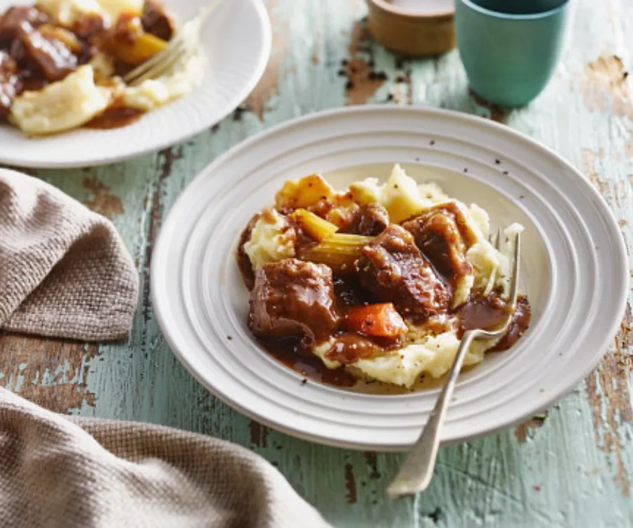 This decadent dish is perfect for date night or even a midweek treat. It boasts a savoury mushroom and red wine sauce with succulent chunks of beef — served with your choice of mashed potato or al dente pasta. And with a recipe base and a slow cooker, it only requires 15 minutes of preparation.