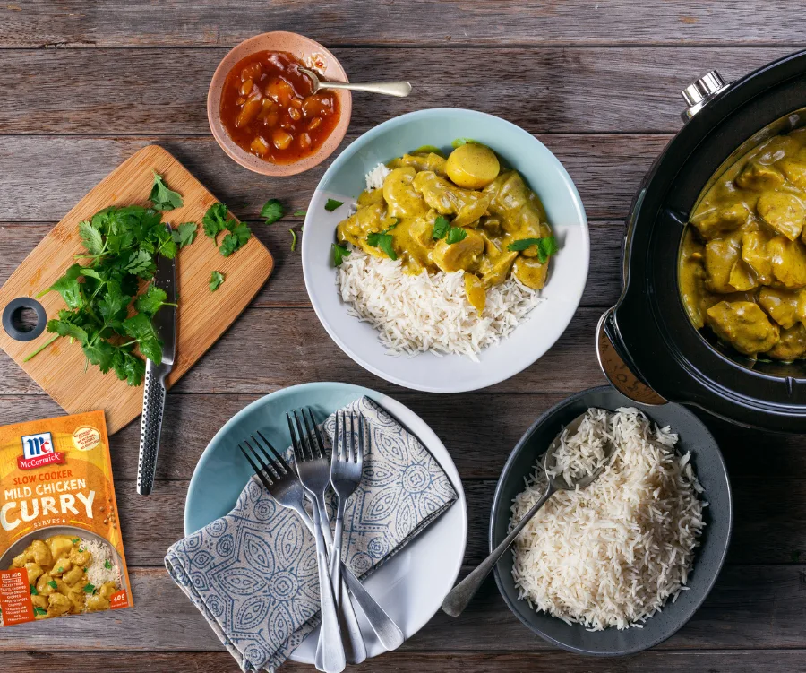 Take your weeknight curry to the next level with tender chicken. Allow it to cook for two hours in a mild blend of turmeric, ginger, and coconut milk (made easy with a recipe base) until tender and aromatic. Enjoy straight out of the slow cooker, and serve with rice and fresh coriander. It’s a family favourite to return to time and time again.