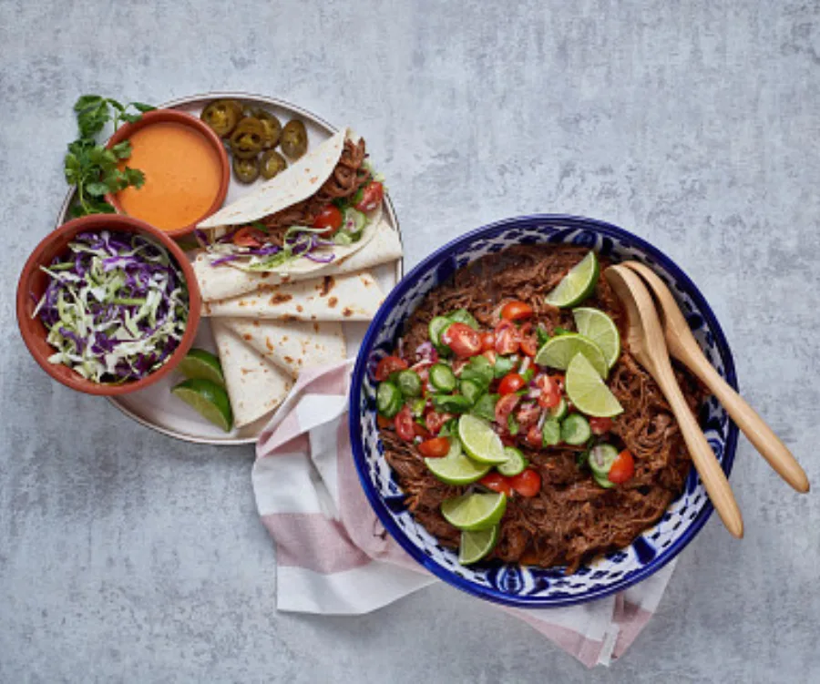 Slow cooked to perfection, this shredded beef mix is a tasty and fun idea for any night of the week. In the morning, combine the ingredients and a McCormick Slow Cookers Beef & Mushroom Ragout Recipe Base into a paste to rub over the brisket, before adding to the slow cooker with the remaining paste. Cover and cook for six hours, before serving for dinner with soft tortillas.