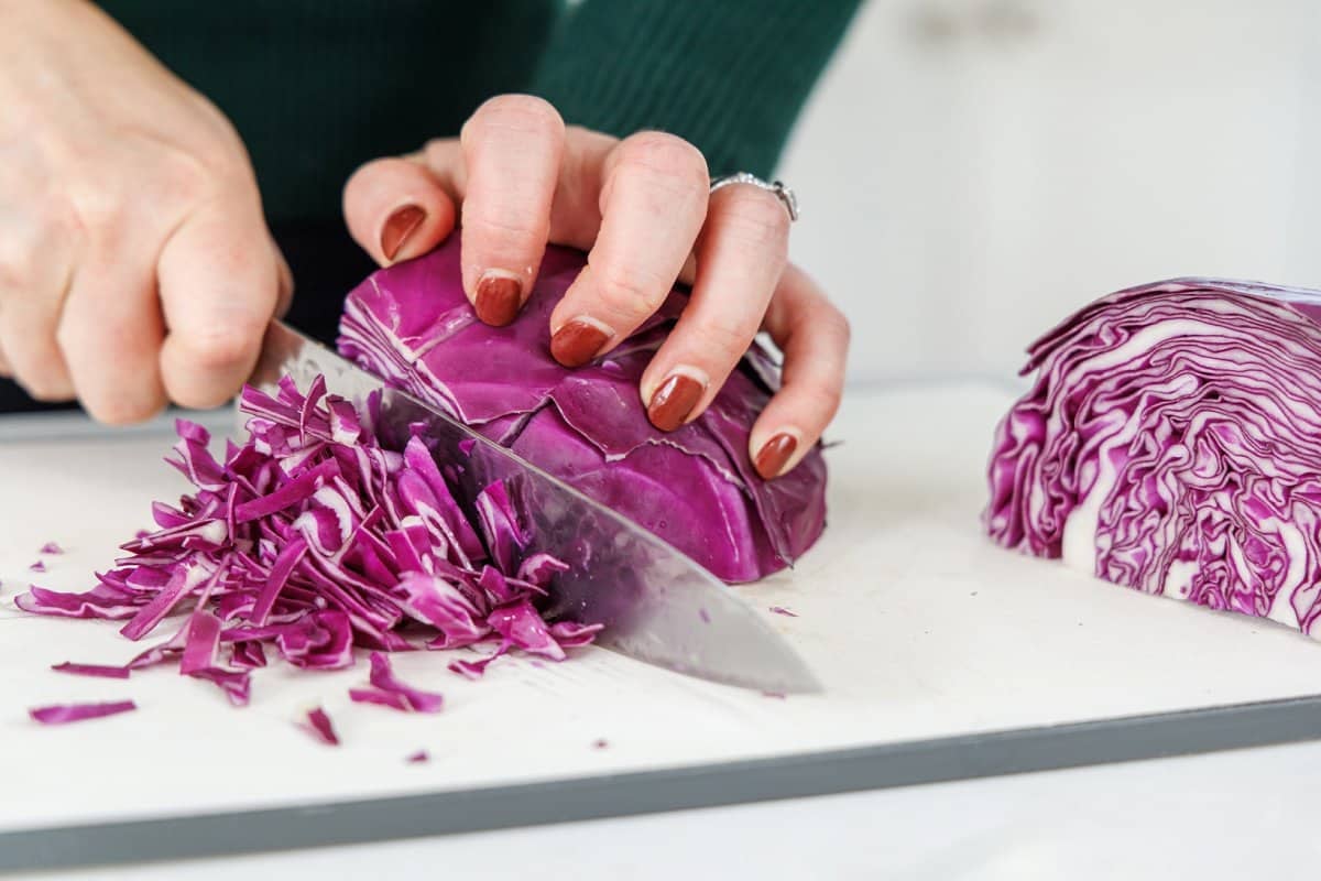 - Cabbage: You can grab a bag of pre-chopped cabbage, or just shred your own mix of purple and green cabbage.