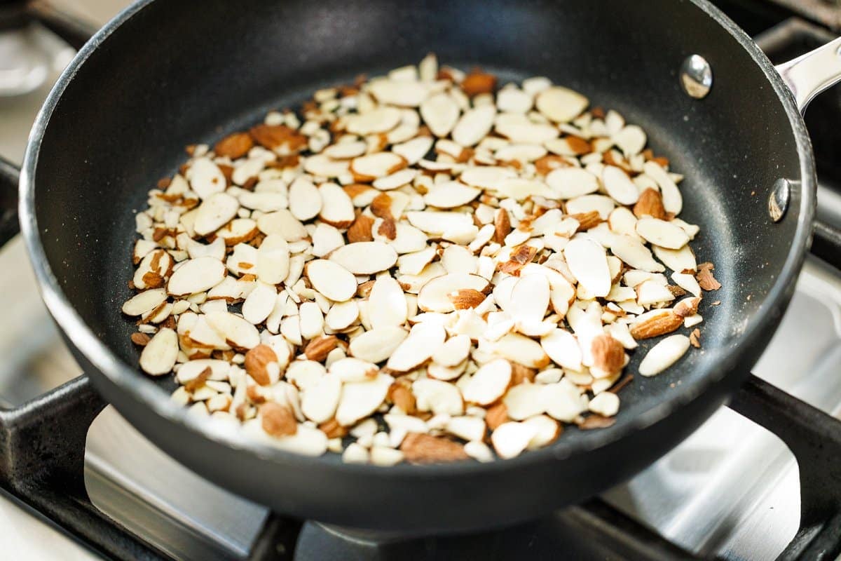 Step 3. If you’re feeling up for it, I also like to toast sliced almonds to throw on top of the salad. It adds a wonderful cruch!