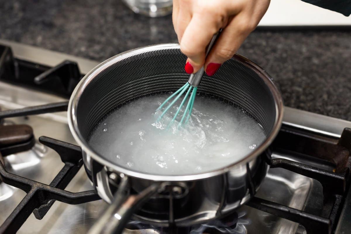 Once the water and sugar are fully combined and the sugar is dissolved, add the sliced jalapeño. Or you could infuse it with fresh ginger or mint!