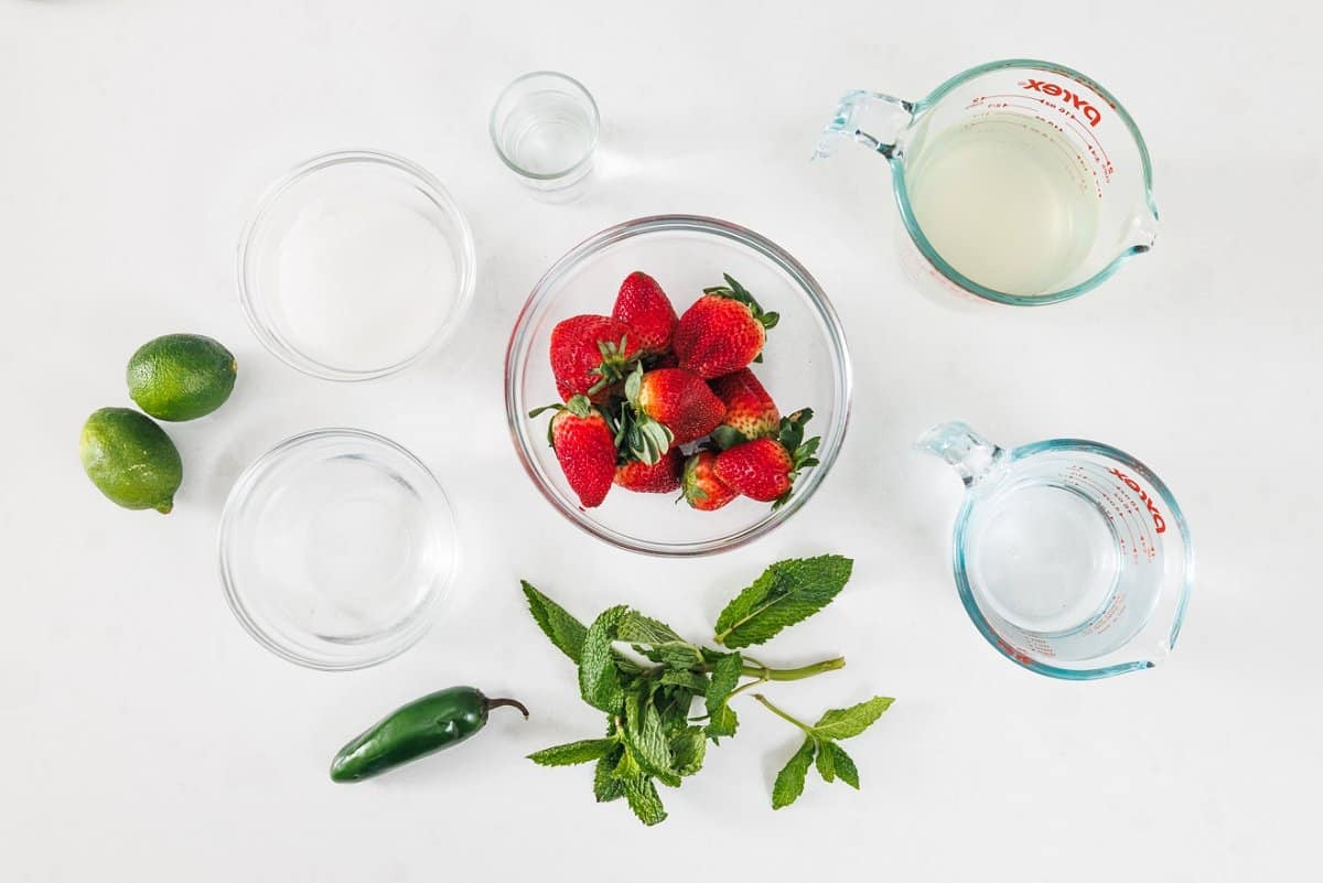 - Simple syrup: I like to infuse my simple syrup with jalapeño as the kick of heat balances out the fruity, sweetness of the cocktail. But you can skip the jalapeño if you don’t like spicy!
