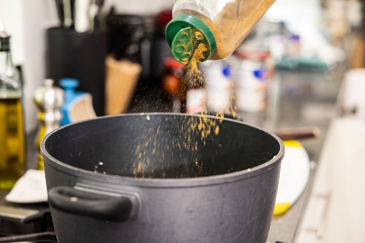 - To the pot, add the ground turkey, cumin, chili powder, smoked paprika, coriander, salt and pepper. Cook until turkey is browned, stirring occasionally, 7-9 minutes.