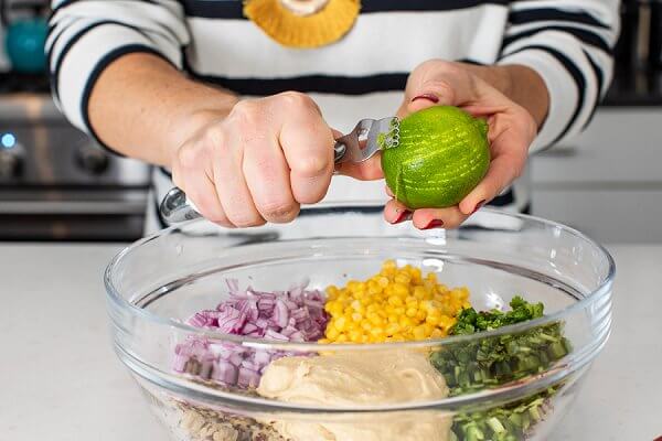 Made with hearty quinoa, sweet corn, spicy jalapeño, creamy hummus and a bit of lime zest, these quinoa fritters are guaranteed to be a crowd pleaser.