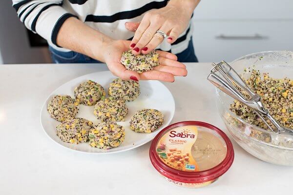 Ideal for an appetizer or as a unique side dish, these quinoa fritters are ideal for entertaining because they are naturally gluten-free and vegan. Instead of the traditional bread crumbs and egg binder, Sabra hummus keeps all of the ingredients together.