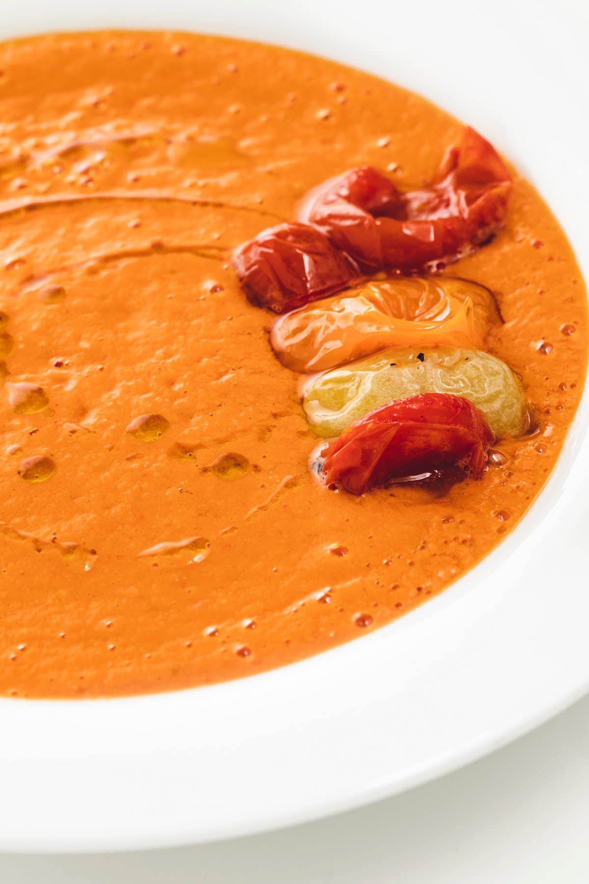 To serve, I love to top the bowl with a few leftover roasted whole tomatoes plus a drizzle of extra virgin olive oil. Toasted pumpkin seeds or cilantro would be a great garnish as well!