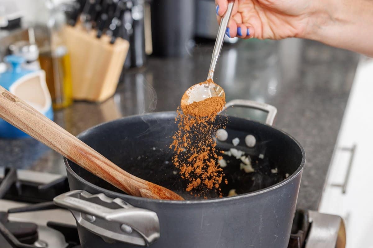 Then add your cinnamon, turmeric, and cumin.