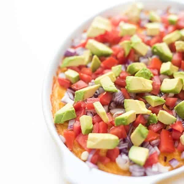 For toppings, I love to mix textures like creamy avocado with crunchy red onion but the truth is – it will taste great with whatever you have on hand! Love cilantro? Add it! Hate red onions? Skip them! Make it your own. Just promise me you’ll make this addictive baked hummus dip.
