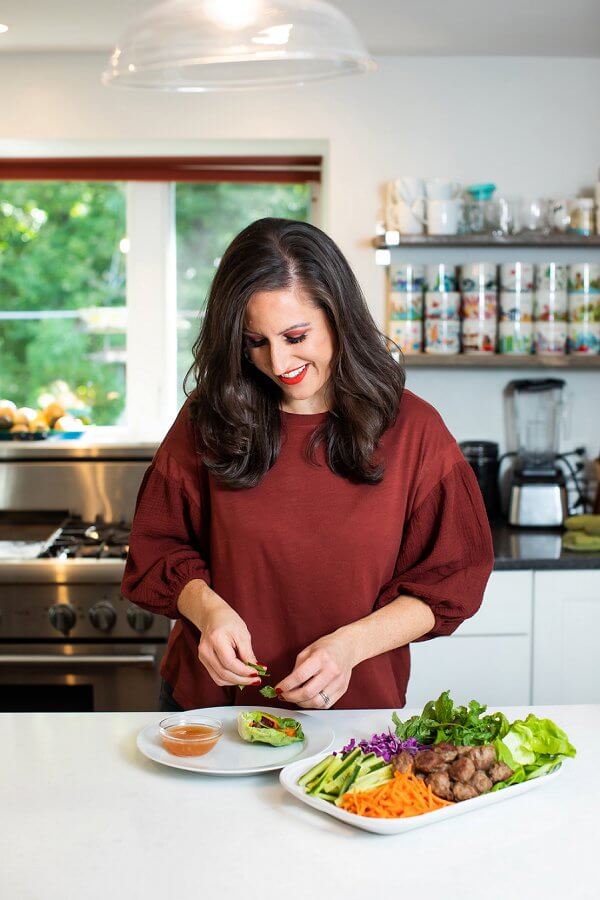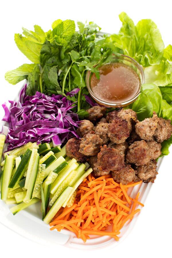 These light and flavorful Vietnamese lettuce wraps are filled with BBQ pork meatballs, crunchy vegetables and fresh herbs.