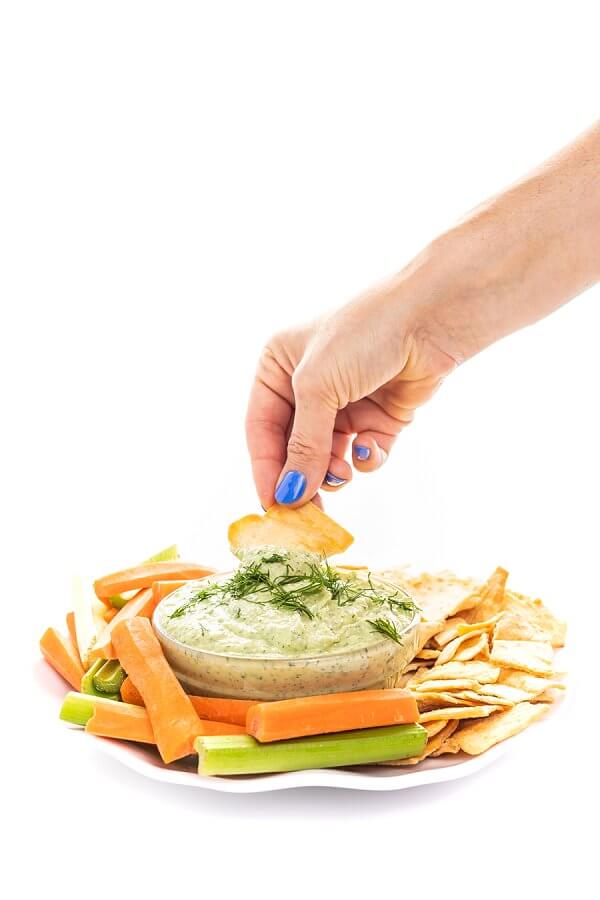 It’s delicious with veggies, pita chips or even dolloped on top of grilled chicken or fish. It was so good you may be eating it with a spoon. Don’t worry, I won’t judge.