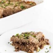 Baked kibbeh or kibbie, a traditional Lebanese dinner recipe, is made with ground beef or lamb combined with bulgur wheat, pine nuts, cinnamon and allspice.
